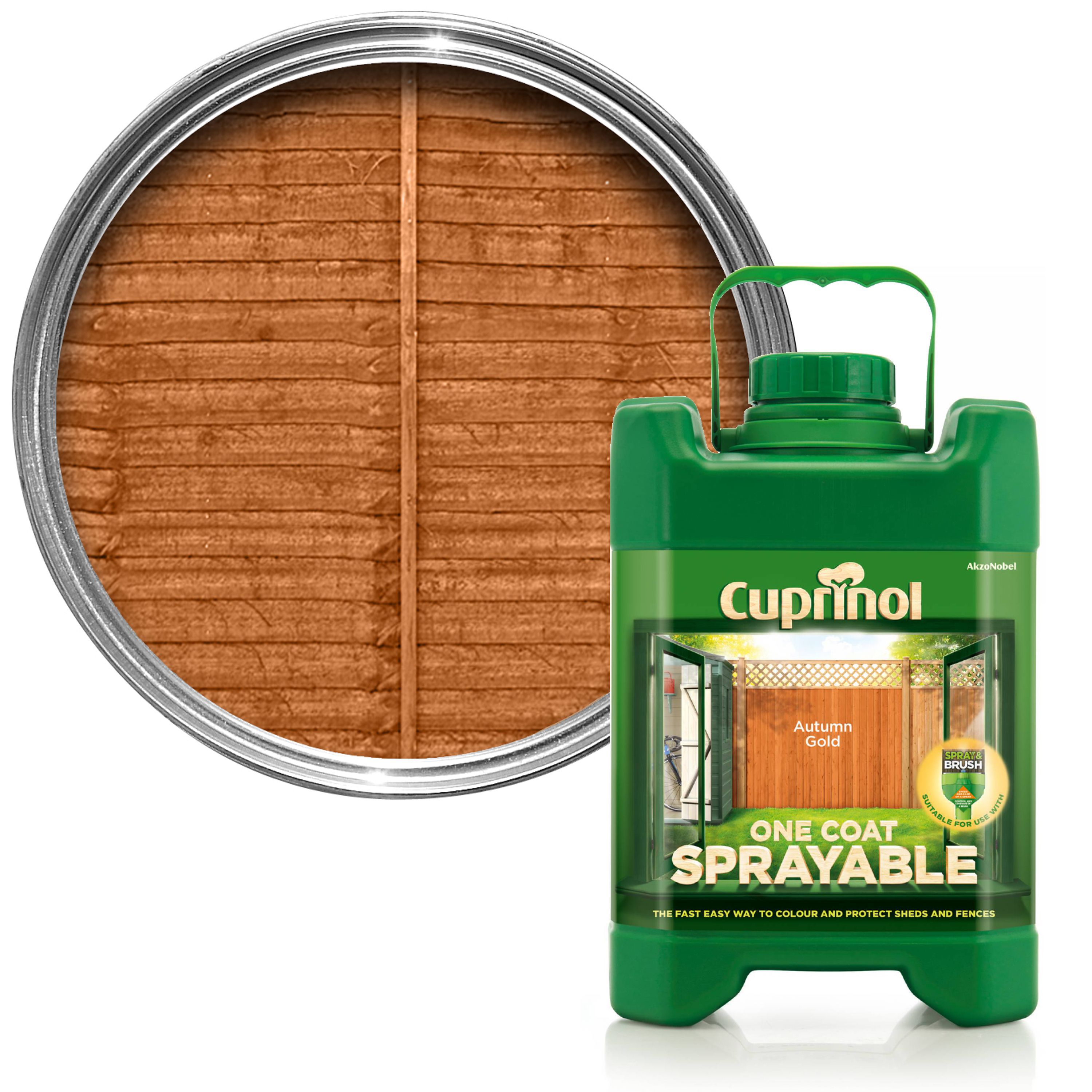 Cuprinol One Coat Sprayable Shed Fence Paint Autumn Gold 5l Homebase